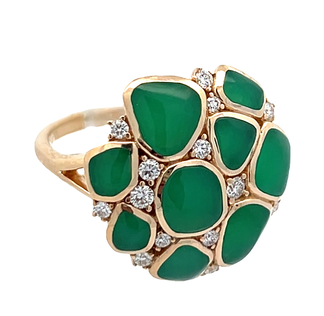 Kabana 14kt yellow gold chrysoprase and diamond freeform cluster ring