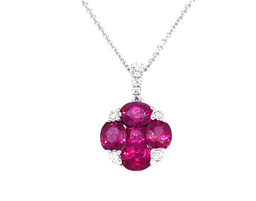 18kt white gold ruby and diamond cluster pendant