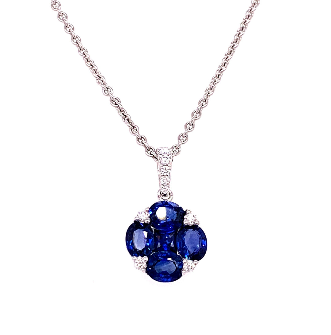 18kt white gold sapphire and diamond cluster pendant necklace