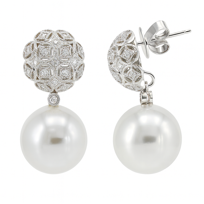 18kt white gold South Sea pearl and diamond convertible earrings
