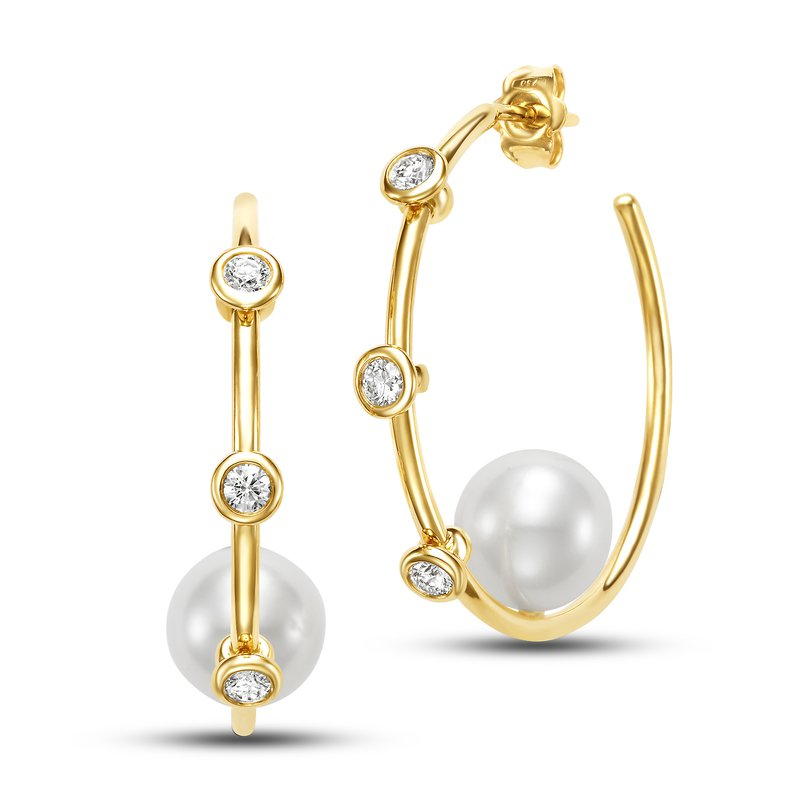 Mastoloni 14kt yellow gold freshwater pearl and diamond hoop earrings.