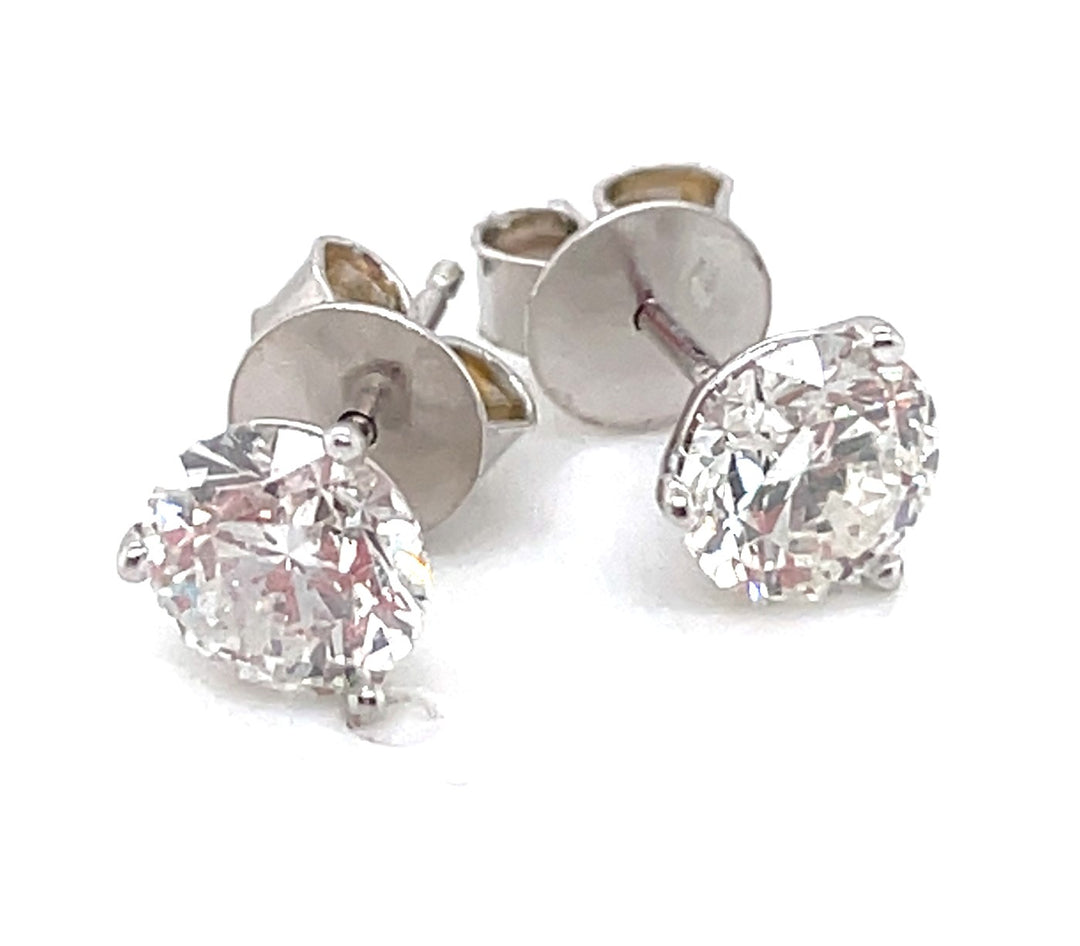 14kt white gold 1.534 carat total weight round diamond stud earrings