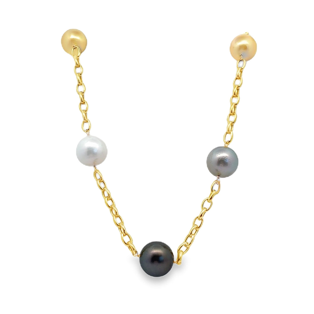14kt yellow gold multi colored South Sea pearl tin cup necklace
