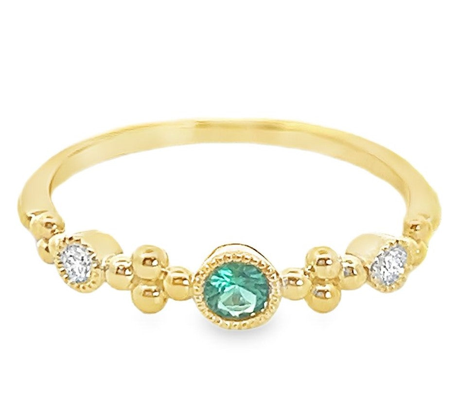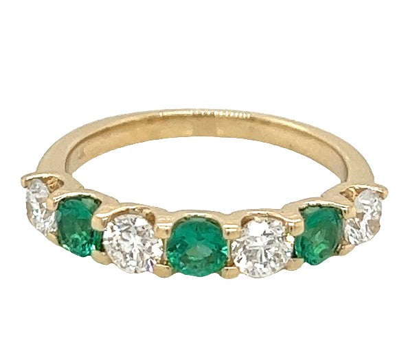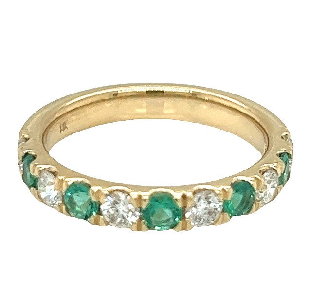 14kt yellow gold emerald and diamond eleven-stone band ring