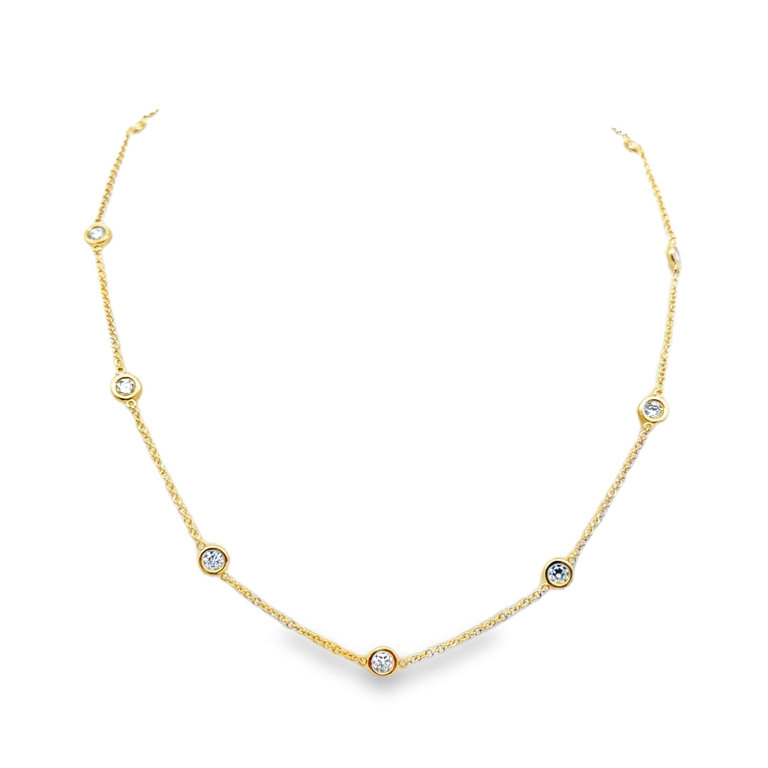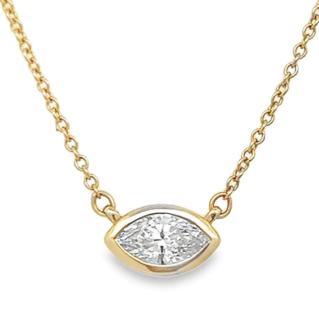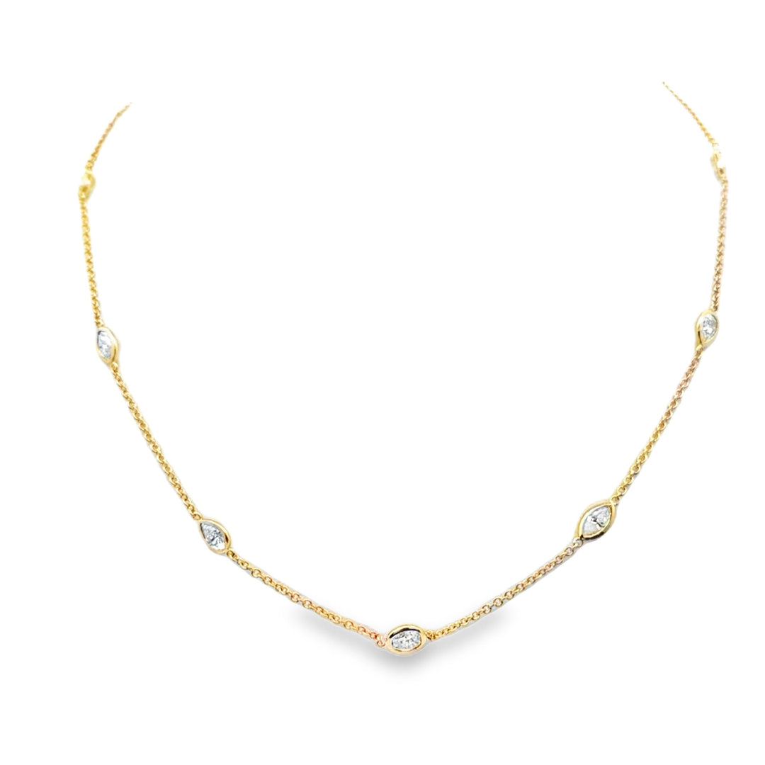 14kt yellow gold marquise diamond solitaire bezel station necklace