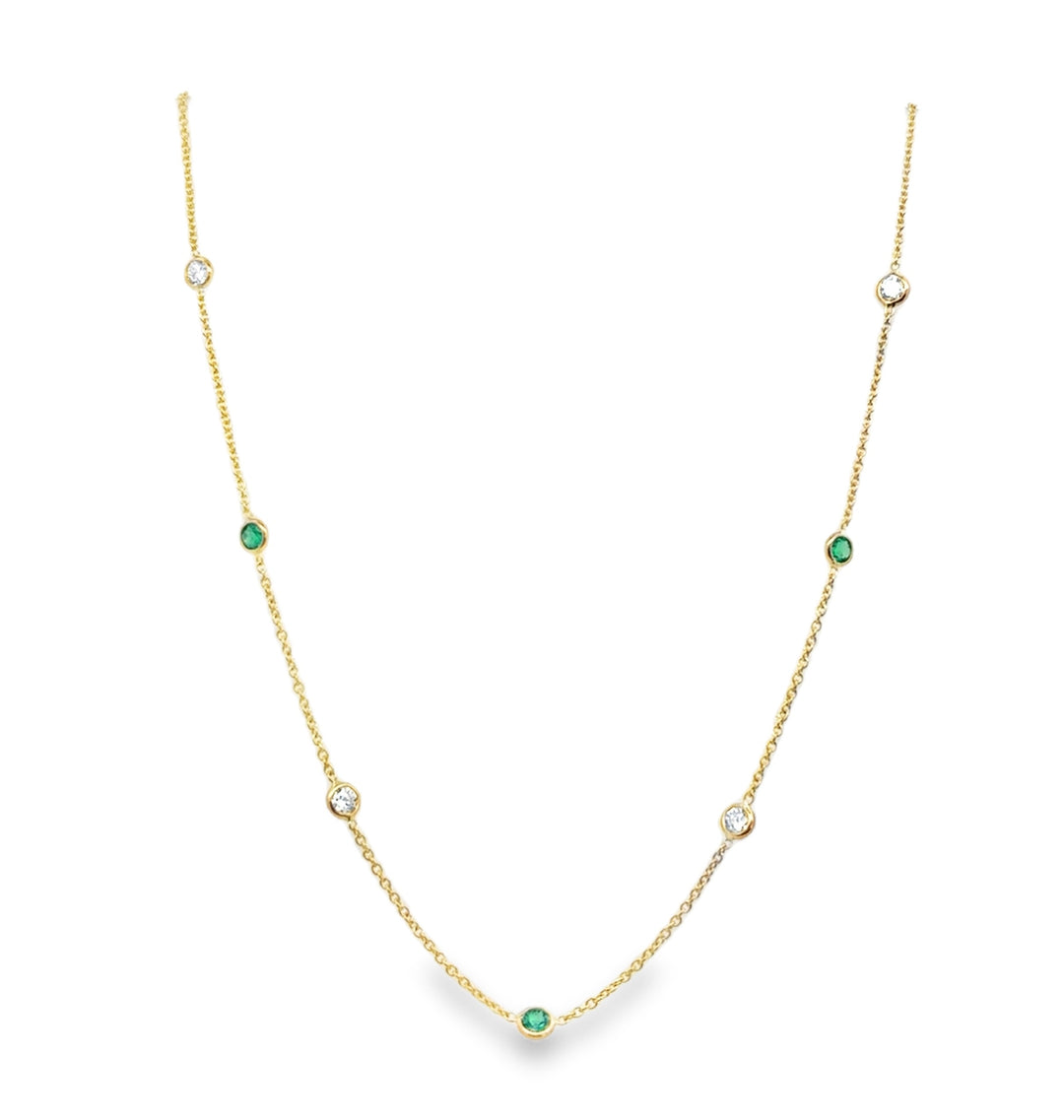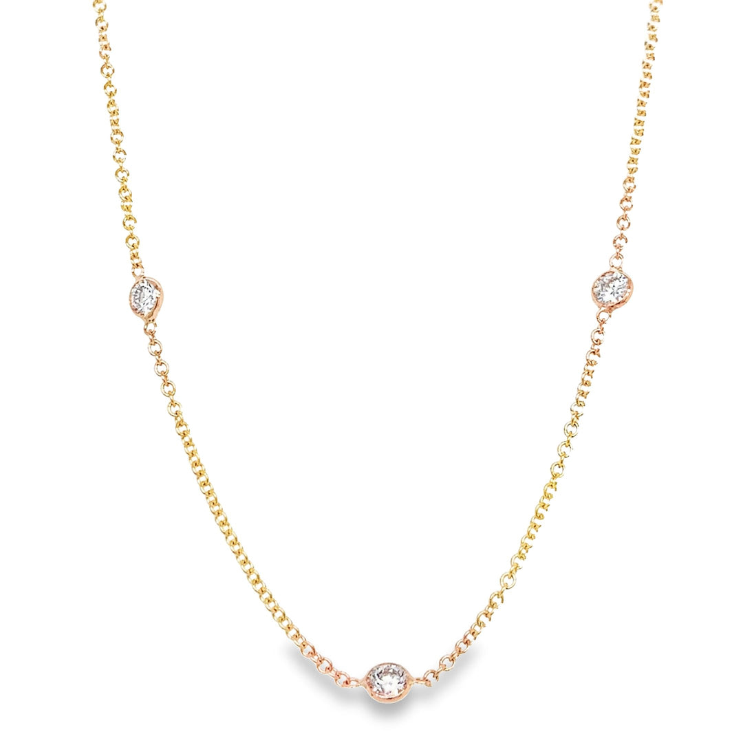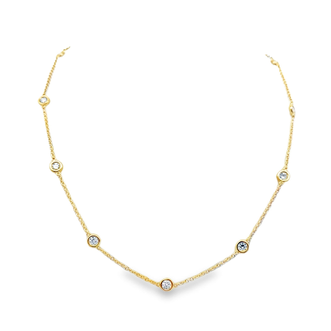 14kt yellow gold marquise diamond solitaire bezel station necklace