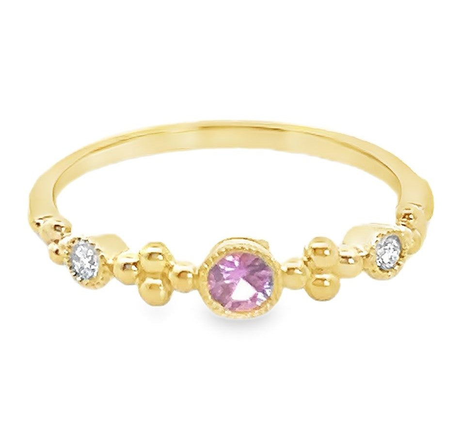 14kt yellow gold pink sapphire and diamond stackable band ring
