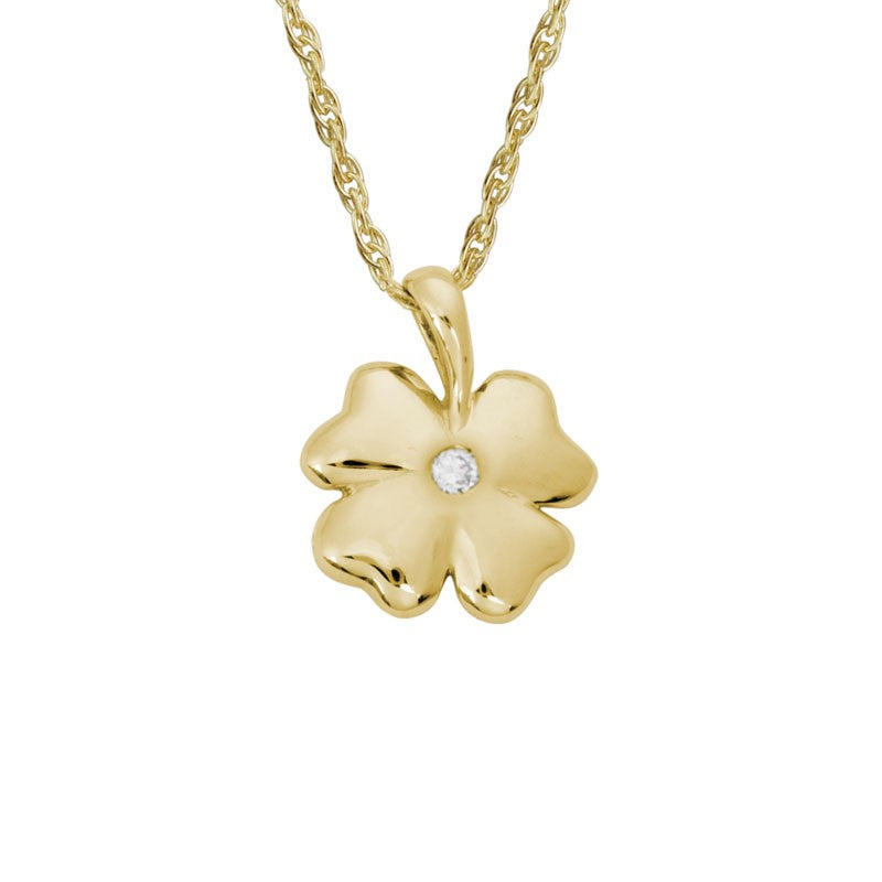 14kt yellow gold diamond-accented four leaf clover pendant necklace