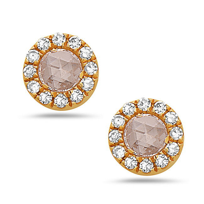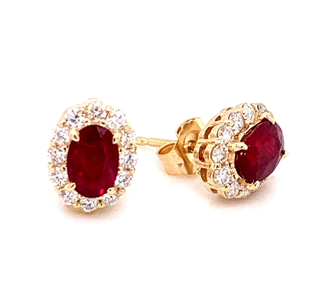 14kt yellow gold oval ruby and diamond halo stud earrings