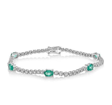 14kt white gold oval emerald and round diamonds bracelet