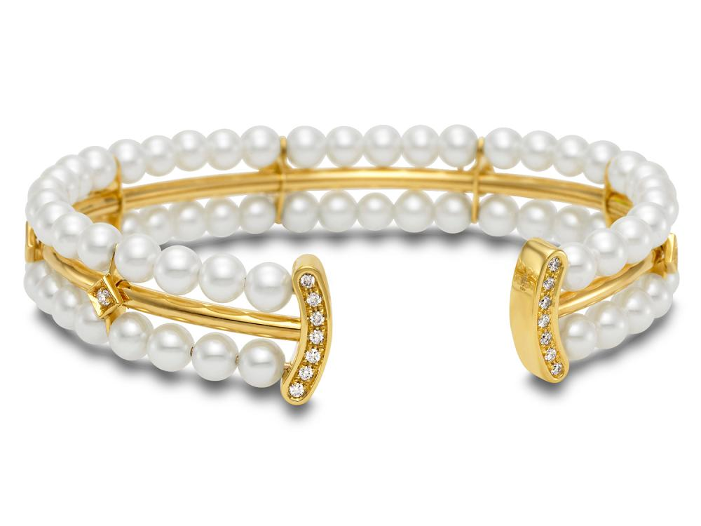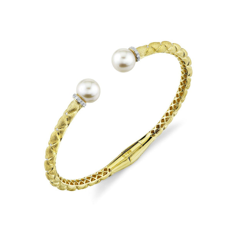 Mastoloni 18kt yellow gold pearl and diamond "Sorrento" cuff bracelet