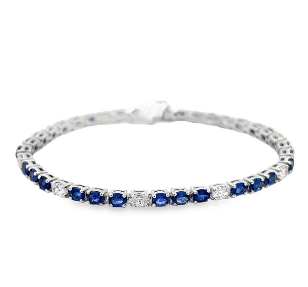 14kt white gold oval sapphire and diamond straight-line bracelet