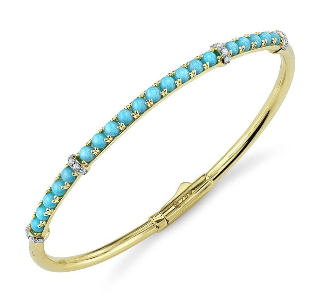 Sloane Street 18kt yellow gold turquoise and diamond bangle bracelet