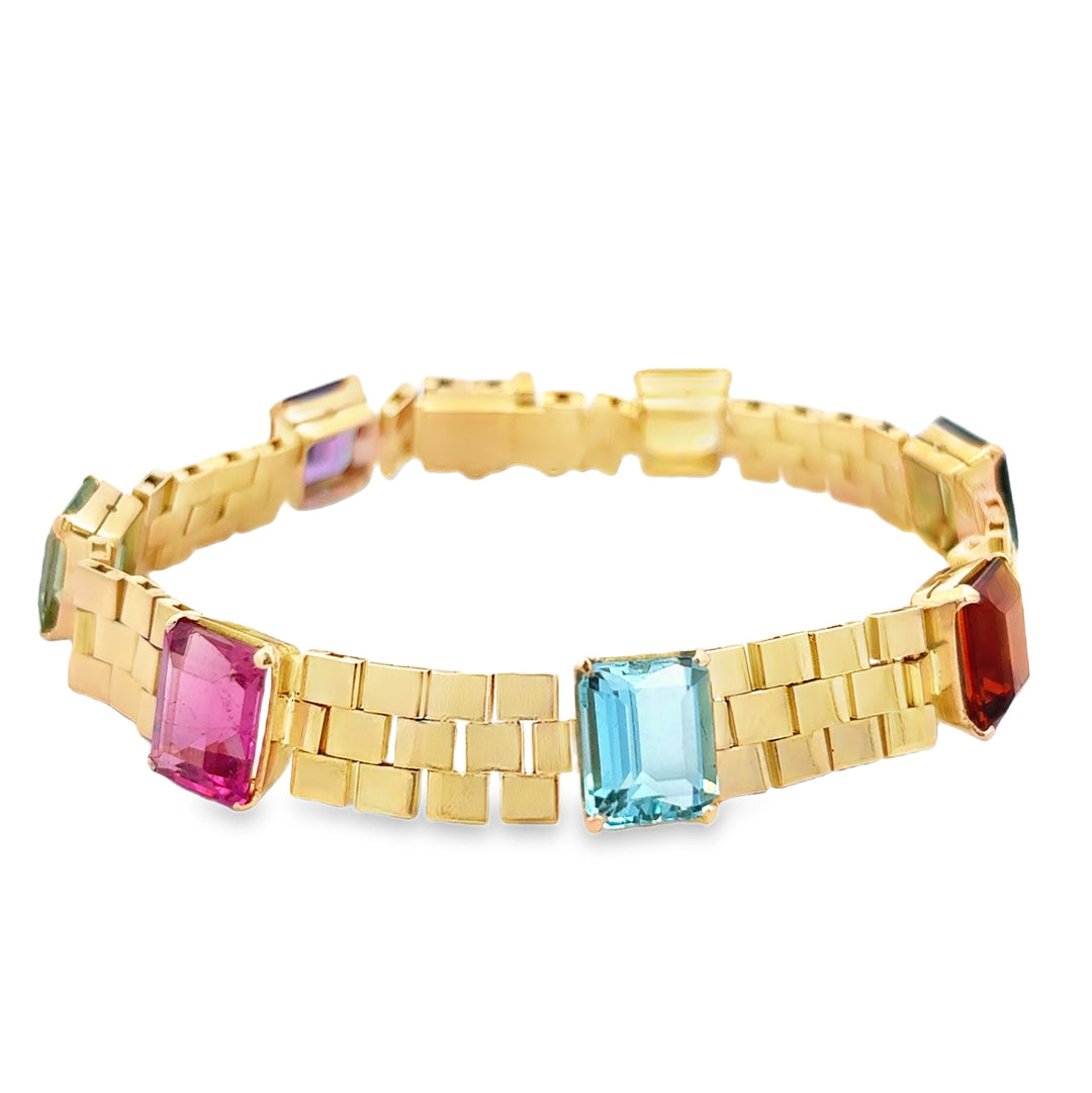 Estate Mid-Century 18kt yellow gold multi color gemstone bracelet