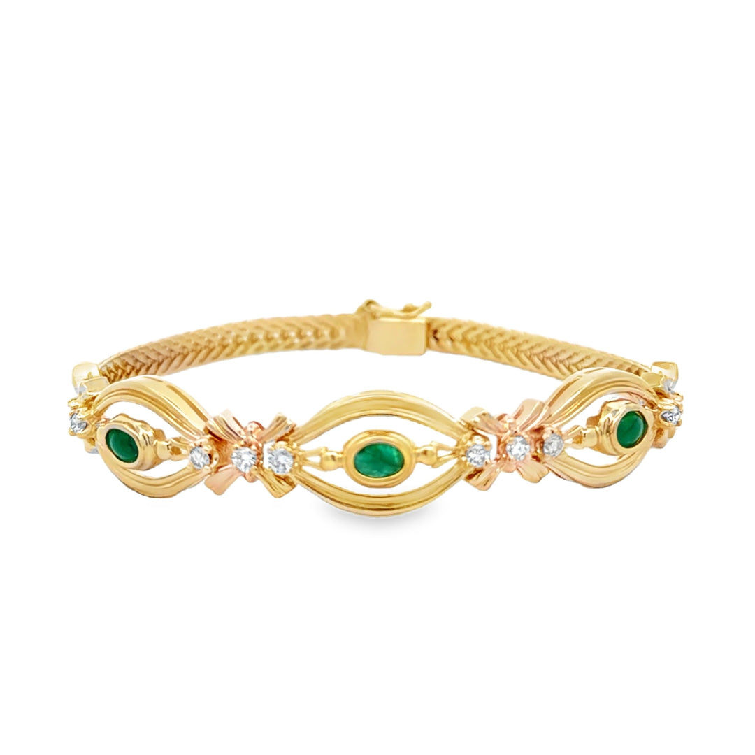 Estate 14kt yellow gold cabochon emerald diamond bracelet