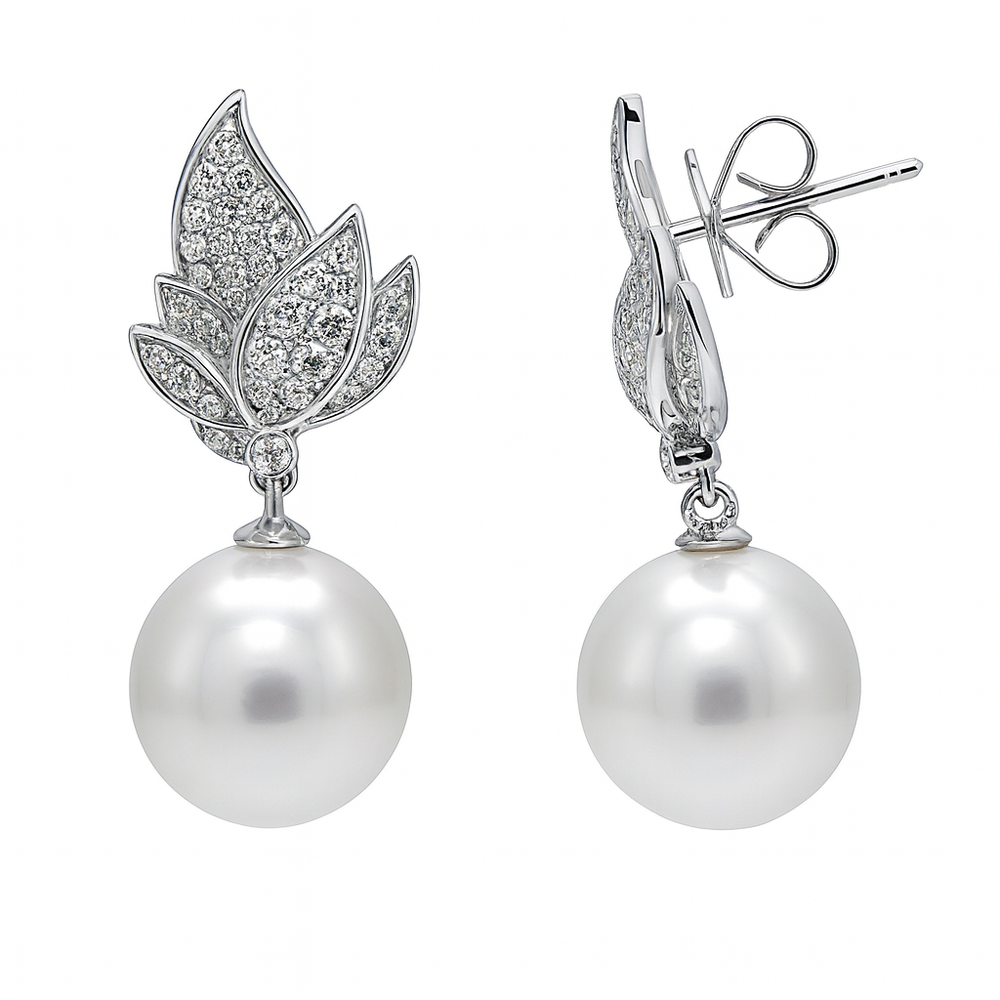 18kt yellow gold golden South Sea pearl and diamond dangle earrings