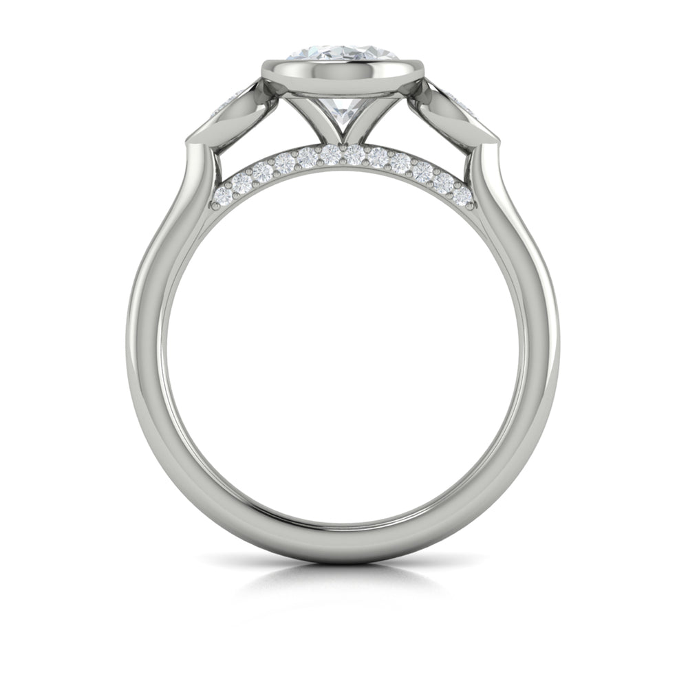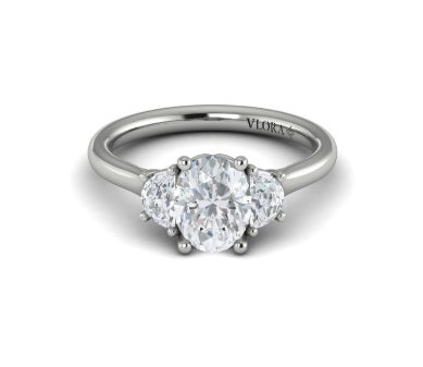 Vlora platinum oval and half-moon diamonds three-stone engagement ring mounting