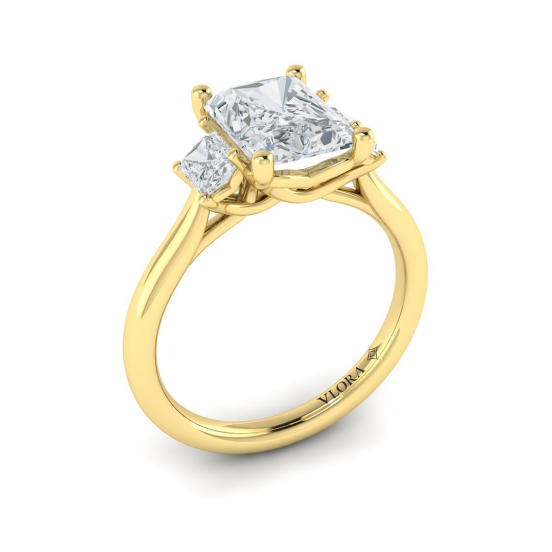 Vlora 14kt yellow gold three-stone emerald cut diamonds engagement ring mounting