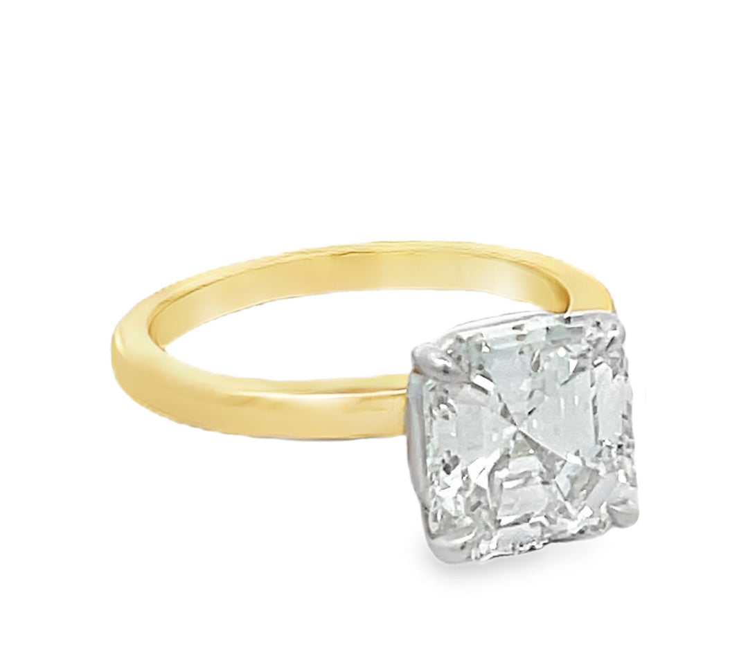 18kt yellow gold and platinum three-carat asscher cut diamond solitaire ring