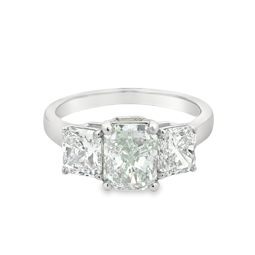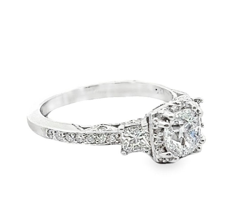 Estate 18kt white gold cushion and princess cut three stone diamond engagement ring by Tacori