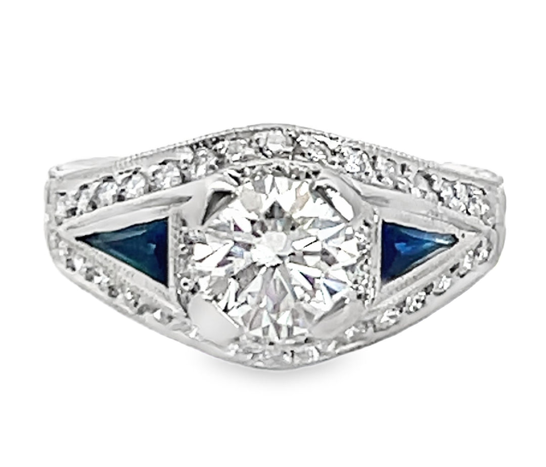 Peter Storm 14kt white gold round diamond and sapphire engagement ring