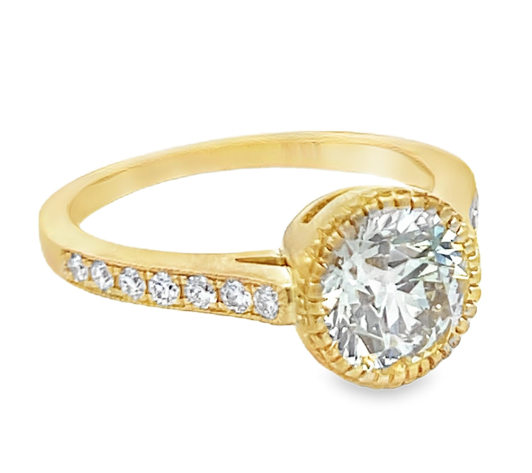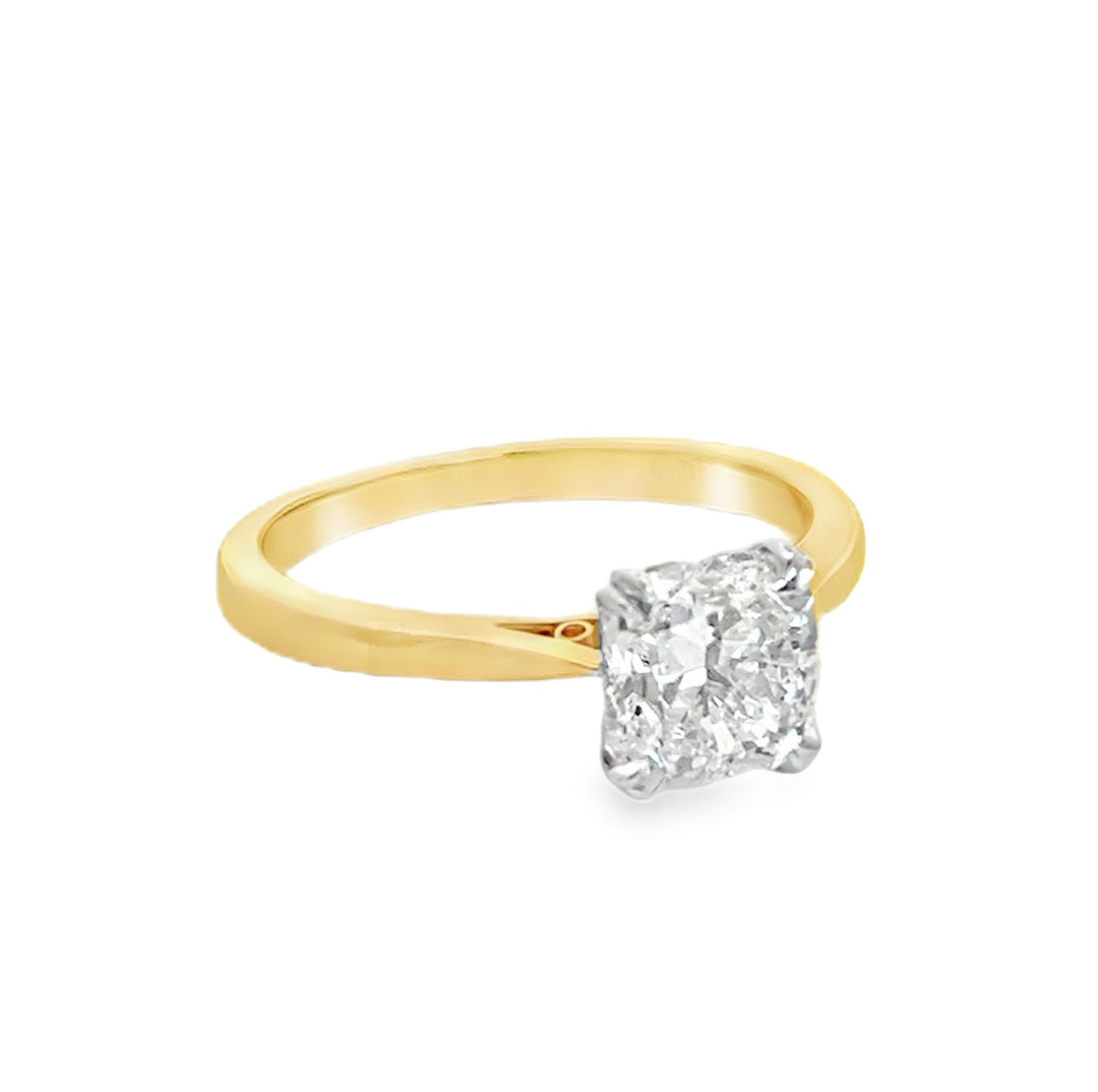 18kt yellow gold and platinum 1.7-carat cushion diamond solitaire engagement ring