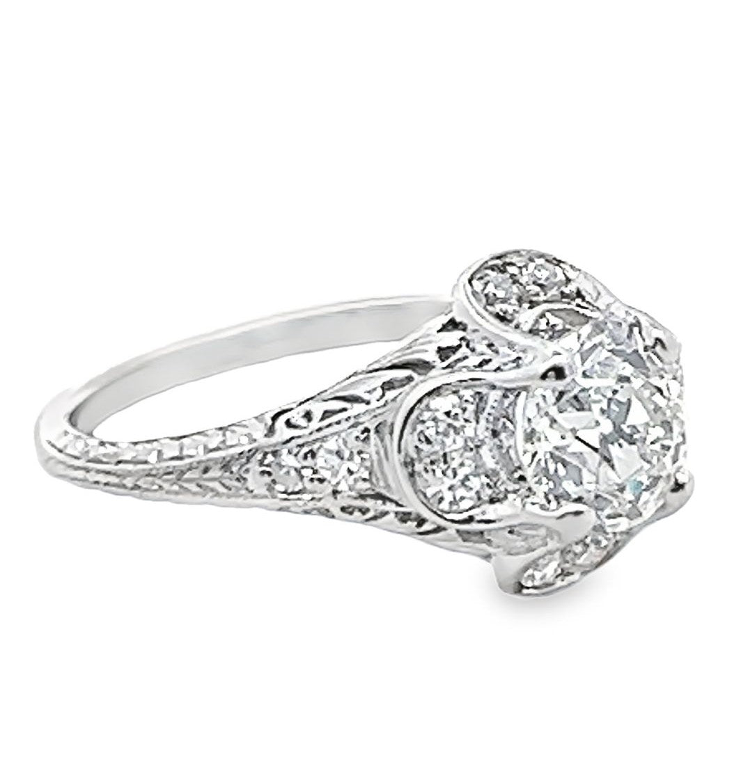 Peter Storm 14kt white gold round diamond hidden halo engagement ring