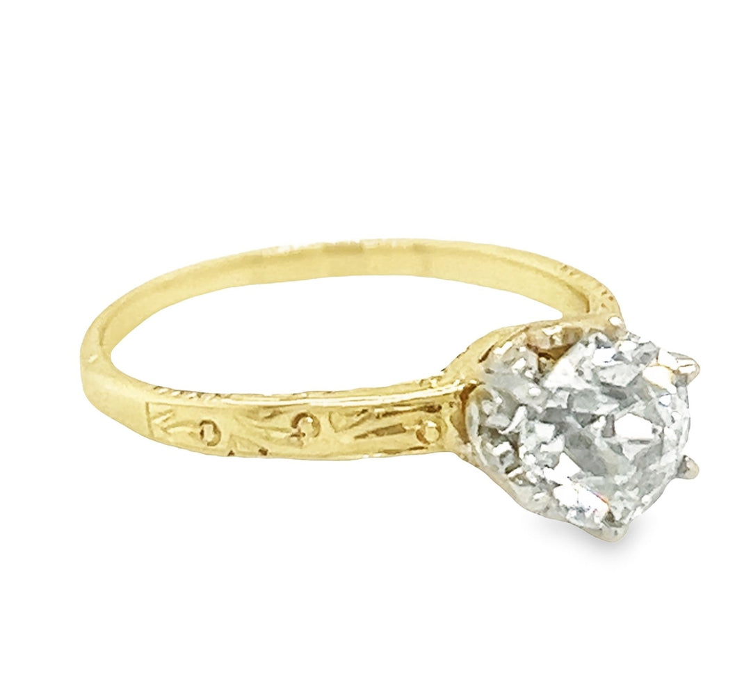 Estate 14kt two-tone Old Mine Cut diamond solitaire engagement ring