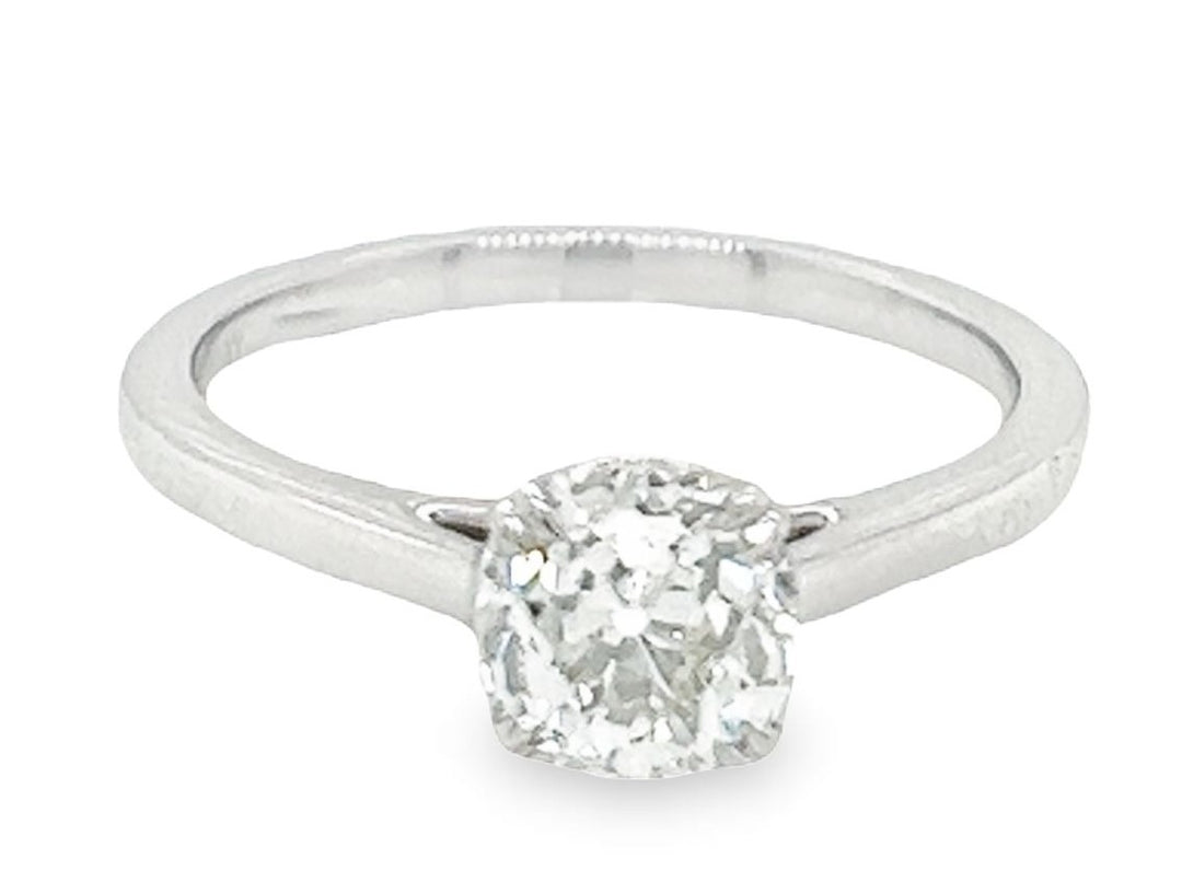 Platinum Old Mine Cut diamond solitaire engagement ring