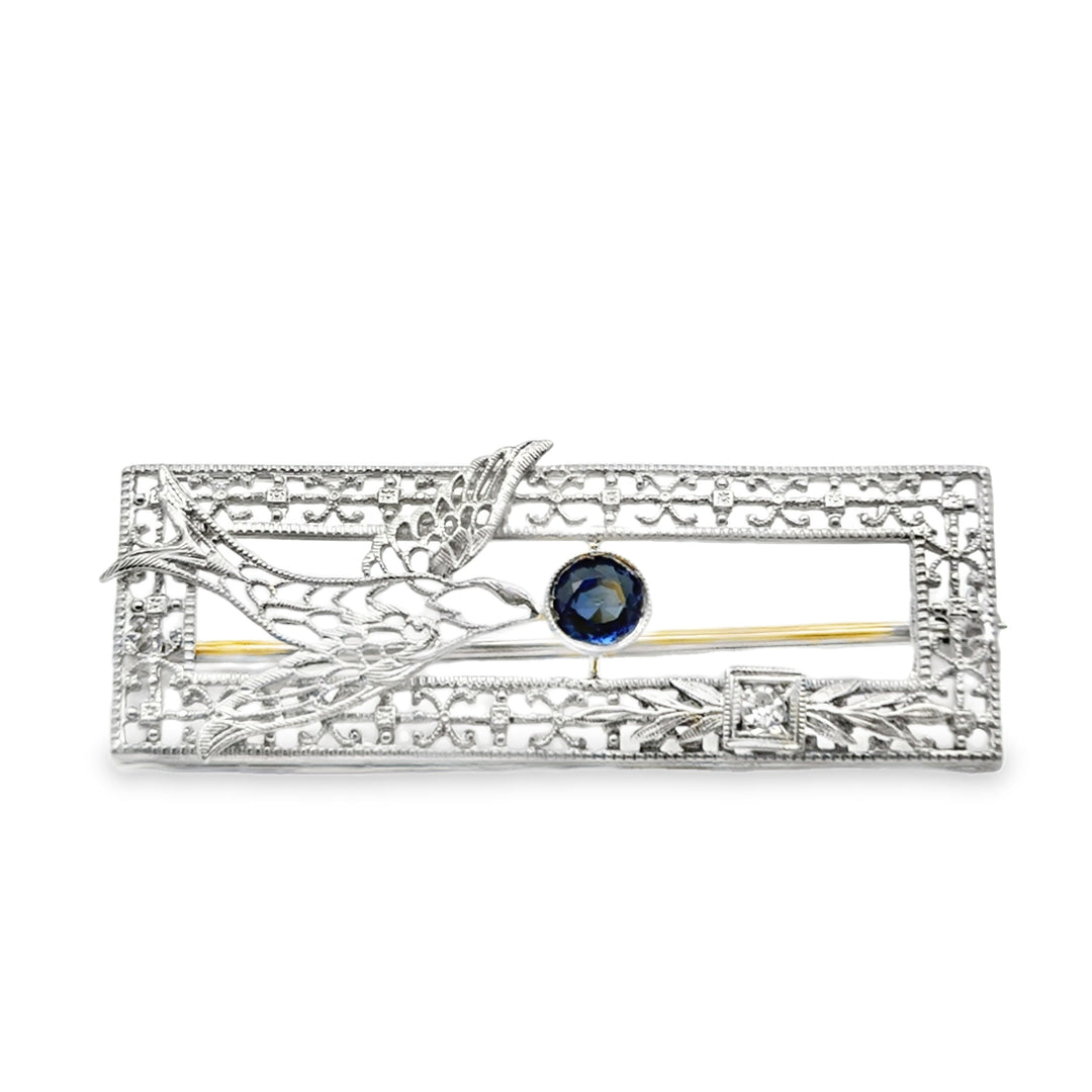 Estate Early 20th Century 14kt white gold filigree bird pin
