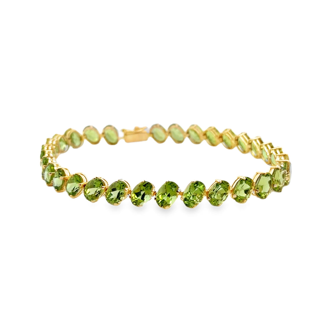 Estate 14kt yellow gold peridot bracelet. This bracelet features facet
