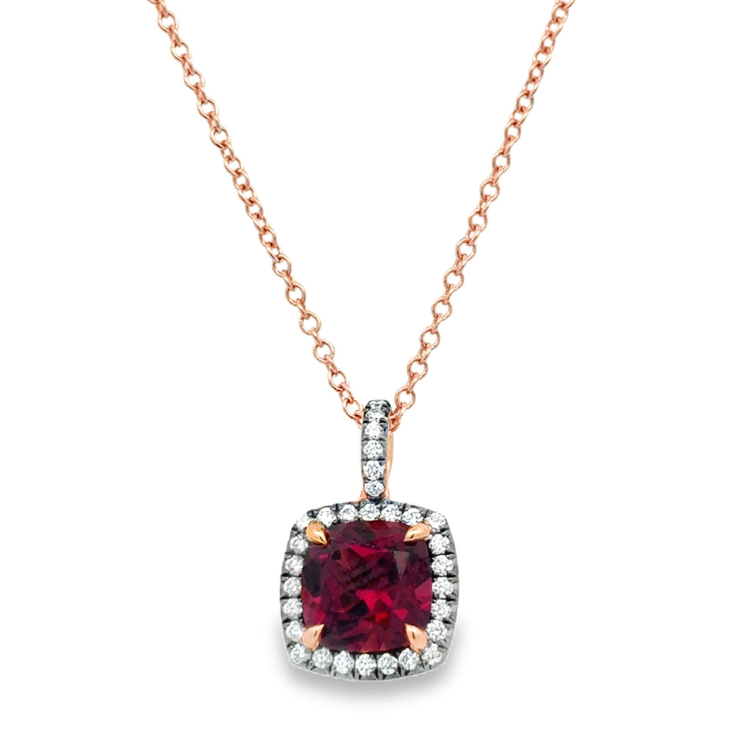 Christophe Danhier 18kt rose gold rhodolite garnet and diamond halo pendant necklace