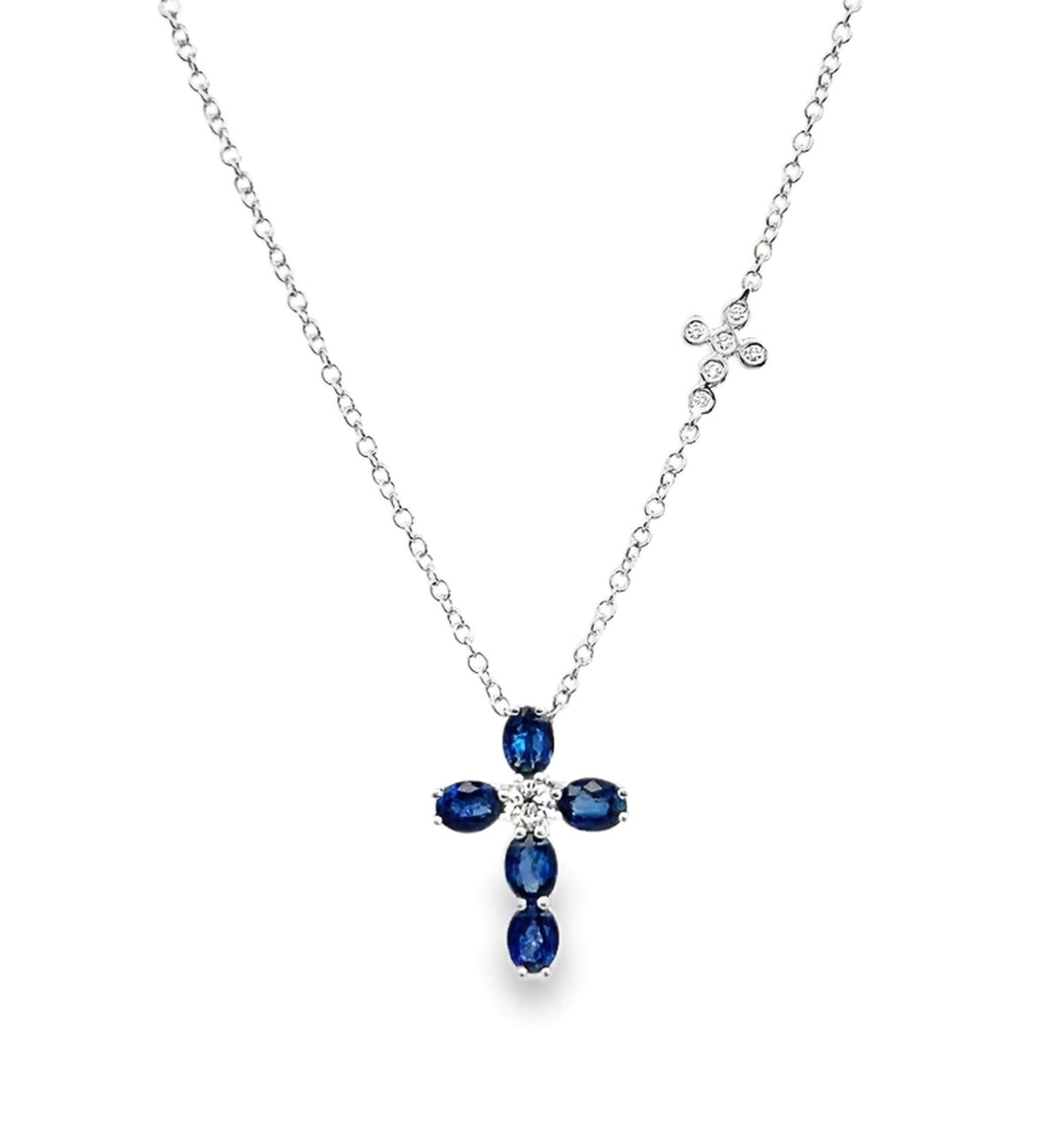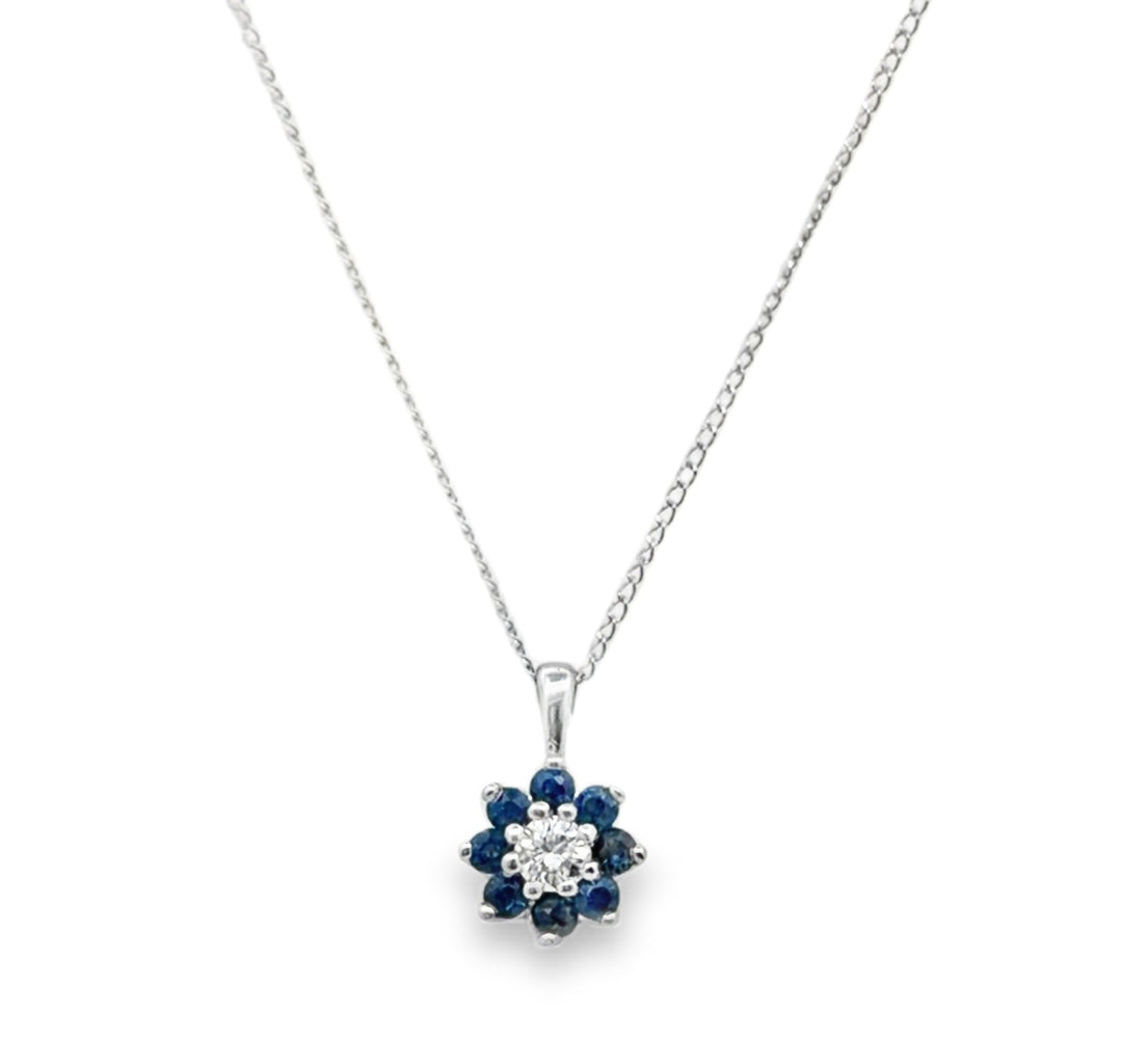 Estate 14kt white gold diamond and sapphire pendant necklace