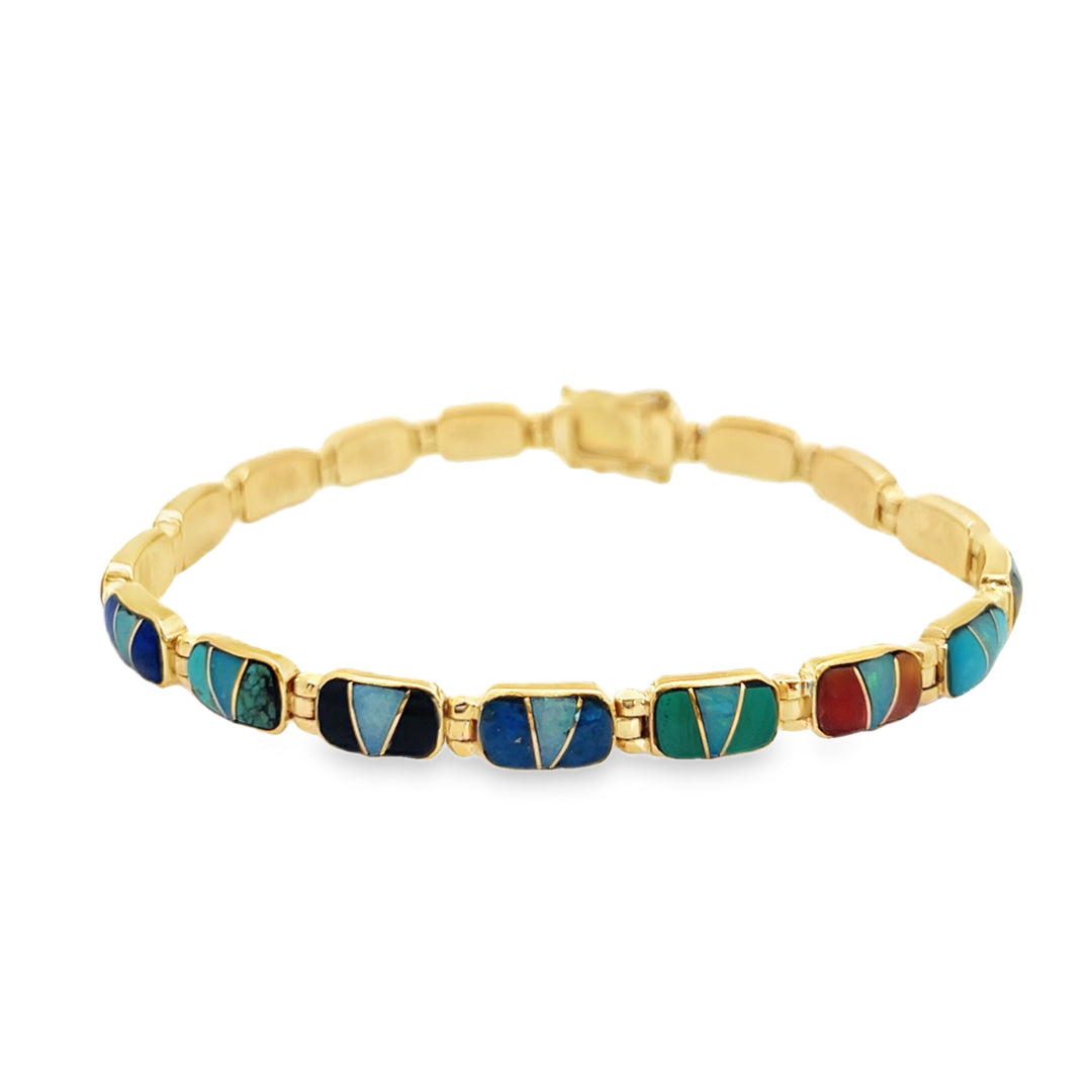 Estate 14kt yellow gold opal and gemstone inlay bracelet