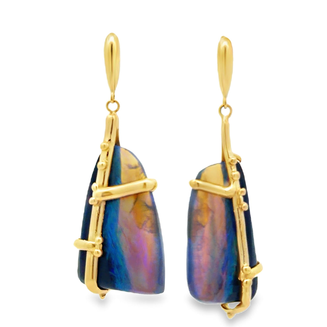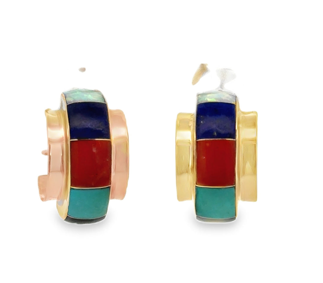 Estate 18kt yellow gold multi-stone inlay and diamond disc earrings