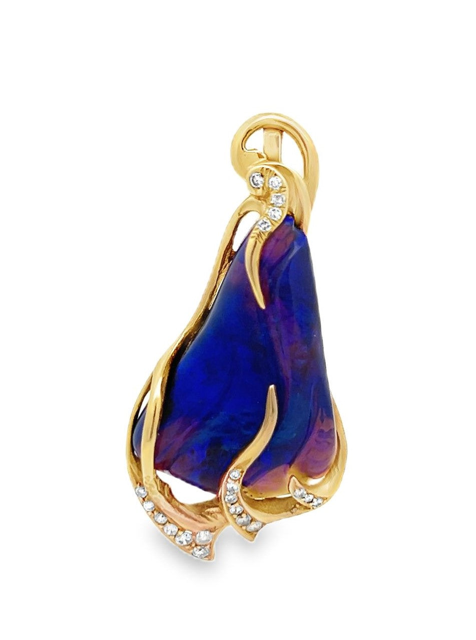 Estate 14ky yellow gold opal and diamond enhancer pendant