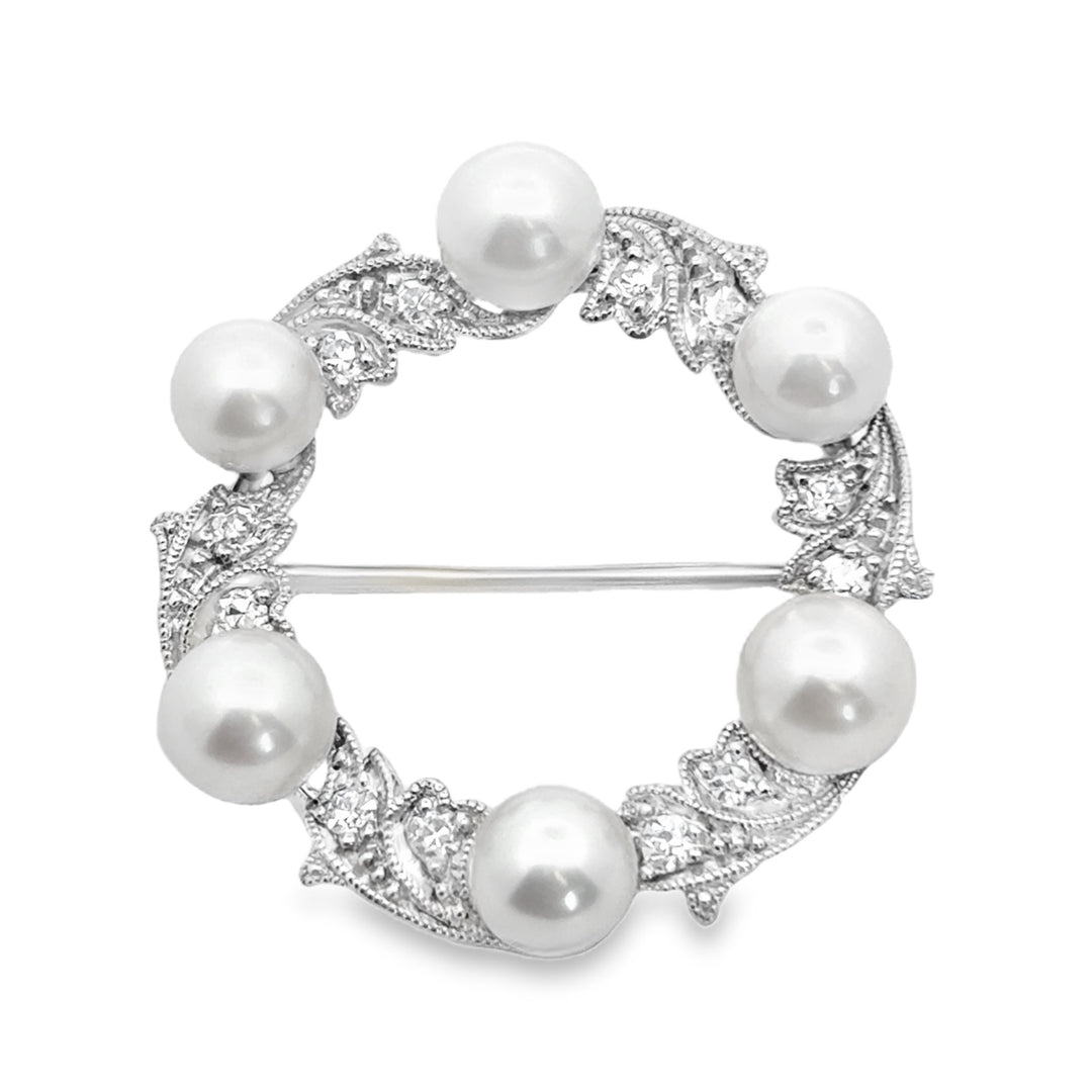 Estate Edwardian platinum pearl and diamond circle brooch by Black Starr and Frost