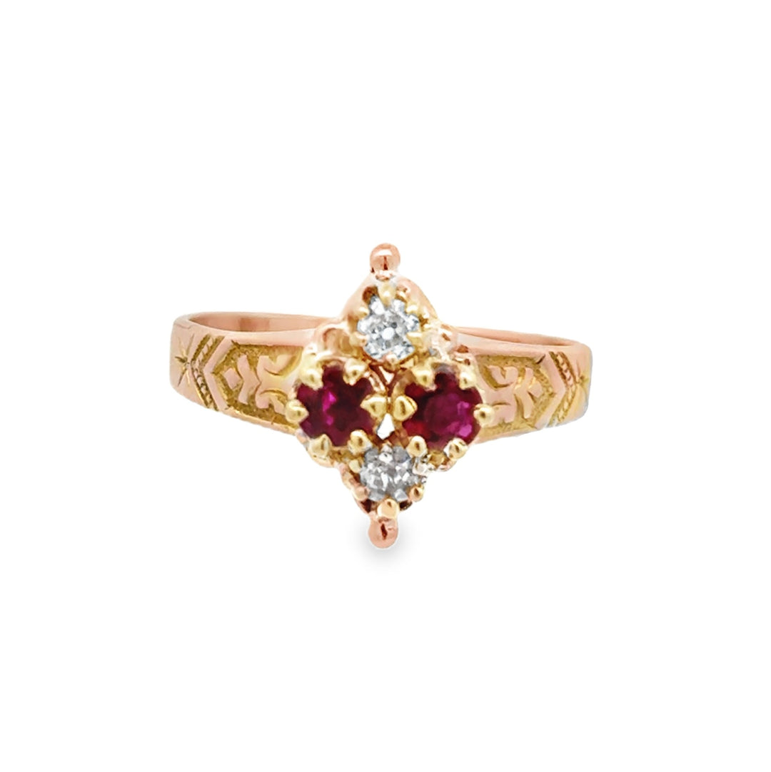 Estate Victorian 14kt yellow gold ruby and diamond ring