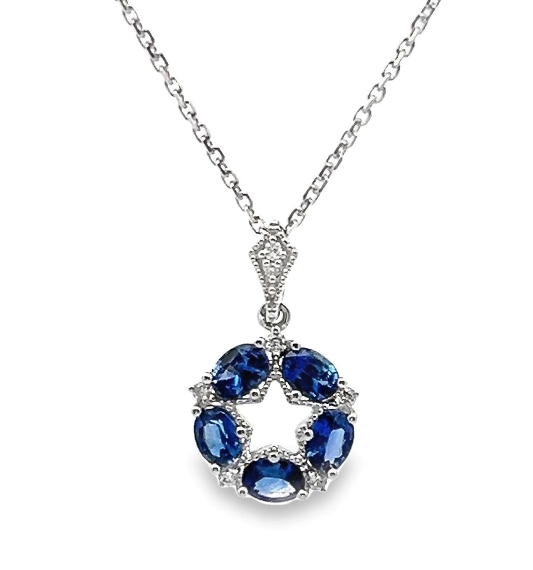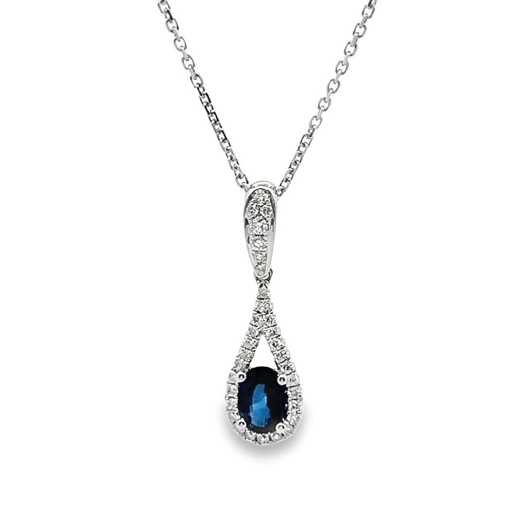 14kt white gold oval sapphire and diamond halo pendant necklace