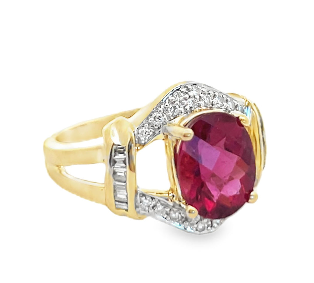 Estate 14kt yellow gold pink tourmaline and diamond ring