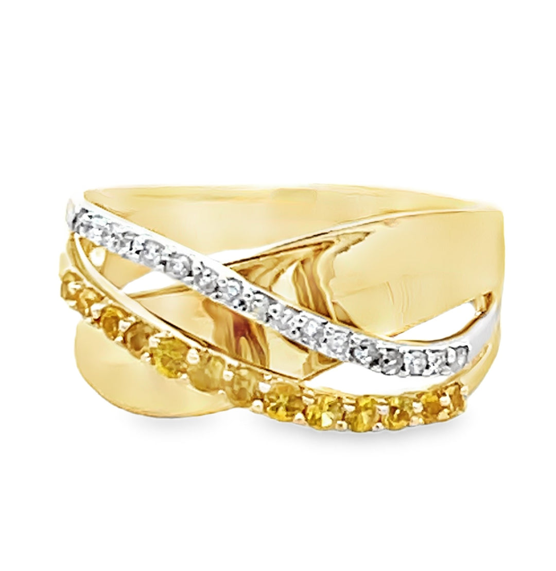Estate 14kt yellow gold yellow sapphire and diamond band ring
