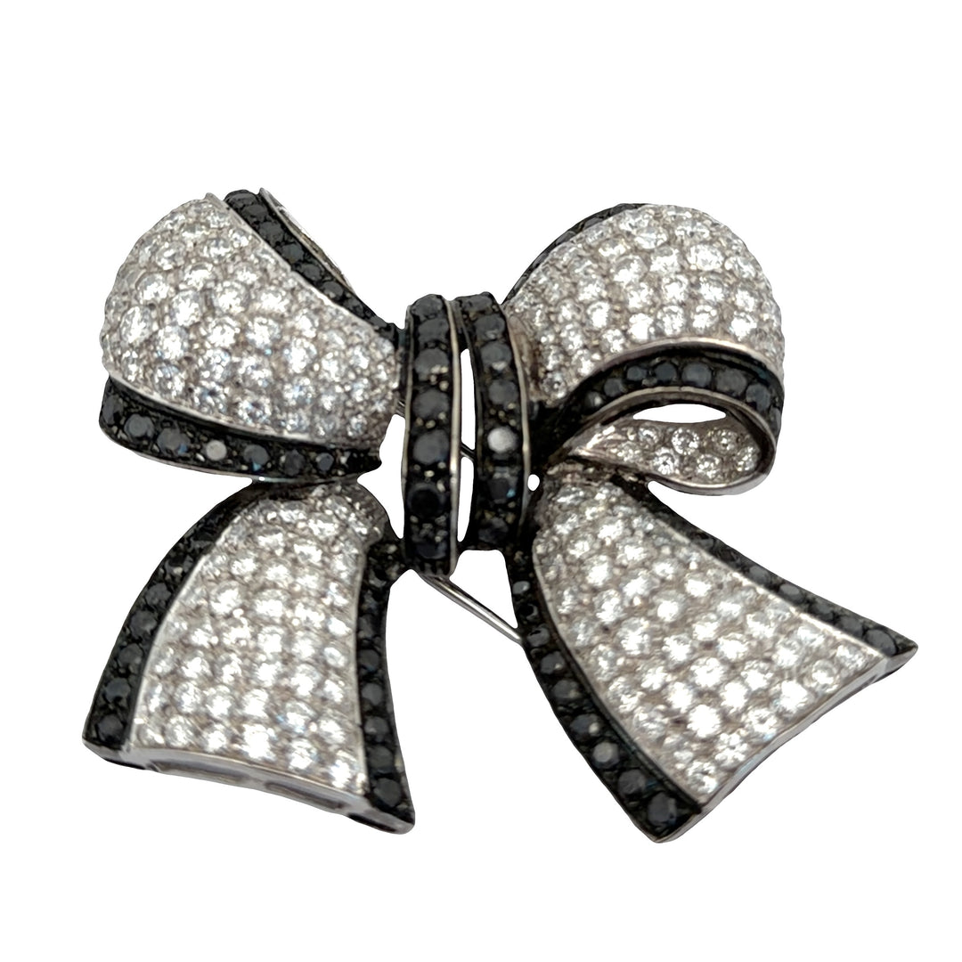 Estate Craig Drake 18kt white gold black and white diamond bow brooch
