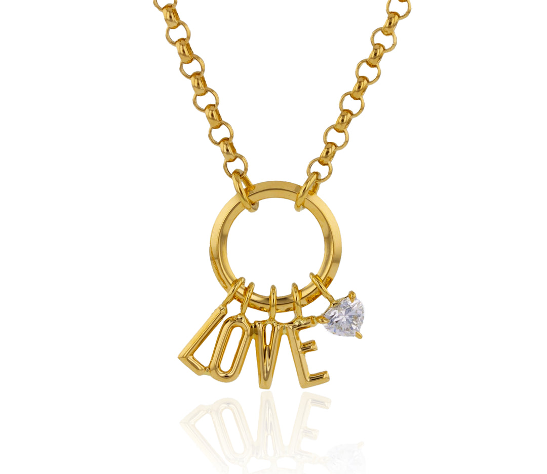 Phillips House 18kt yellow gold and diamond LOVE charm necklace