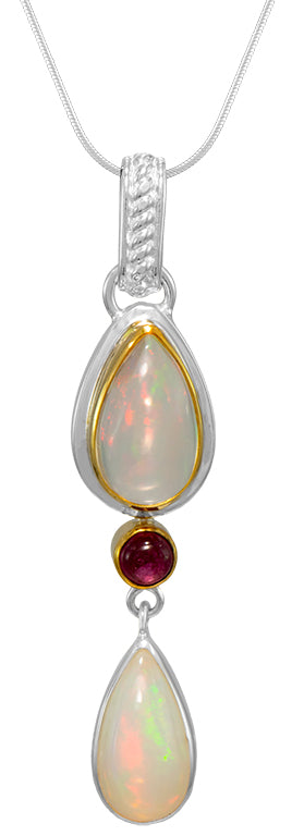Michou Sterling Silver and 22k Vermeil opal and pink tourmaline pendant