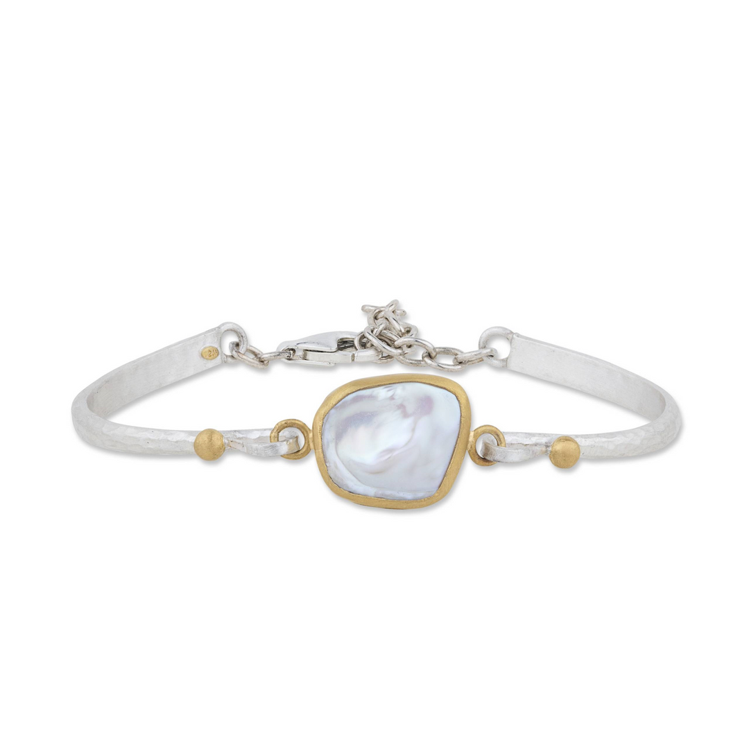 Lika Behar sterling silver and 24kt gold "Karin" Keshi pearl bracelet