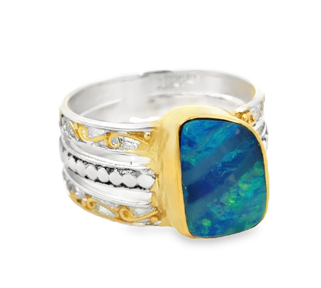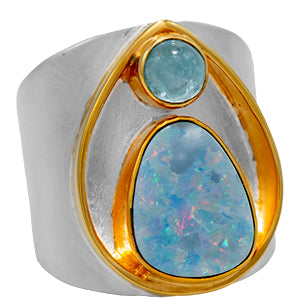Michou Sterling Silver and 22k Vermeil opal and aquamarine ring