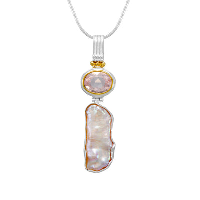 Michou Sterling Silver and 22kt Vermeil pink tourmaline and blister pearl pendant