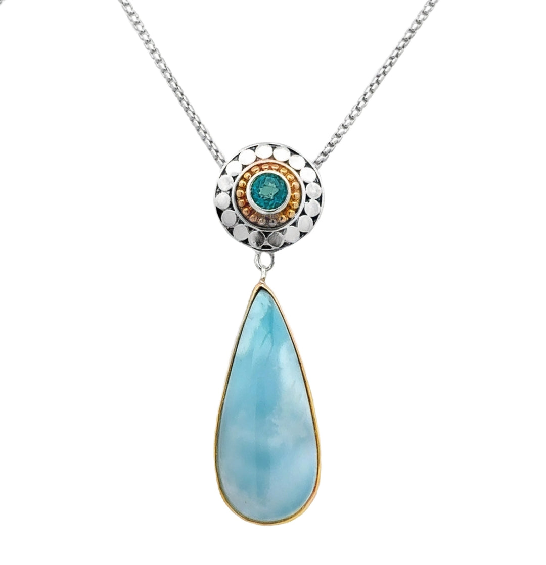 Michou sterling silver and 22kt yellow gold vermeil larimar and paraiba topaz pendant necklace