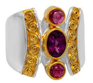 Michou Sterling Silver and 22kt Vermeil pink tourmaline and rhodolite garnet ring