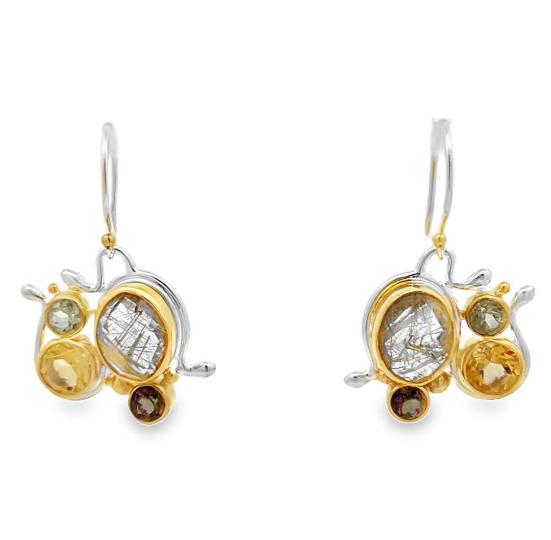 Michou Sterling Silver and 22kt Vermeil gemstone dangle earrings